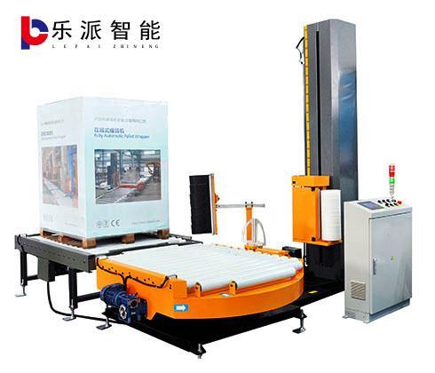 全自动转台在线式缠绕机是适应流水线作业的缠膜机械,满足现代化企业的自动化包装的需求,对提高包装效率,降低劳动强度,减少人力成本,起到积极作用。自动实现托盘四周缠膜及顶部抚摸。轻松实现防尘、防潮及美观可靠的托盘外观,提高包装档次。此类产品已在化工、电子、食品、饮料、造纸等行业自动包装线中得到广泛应用。